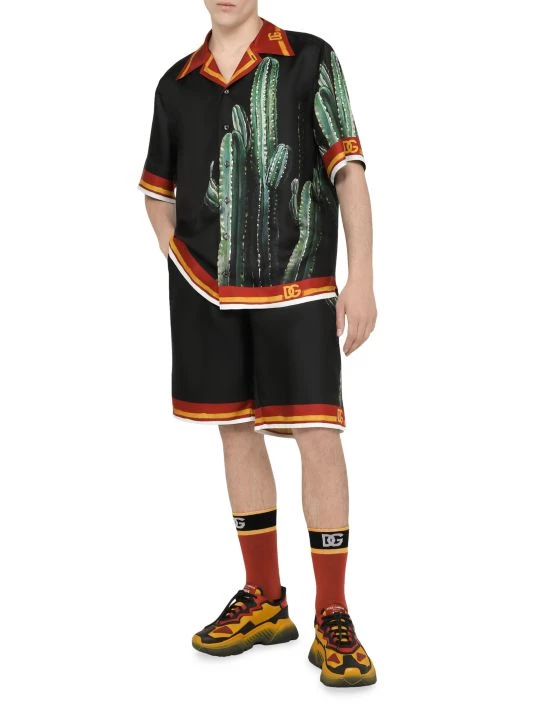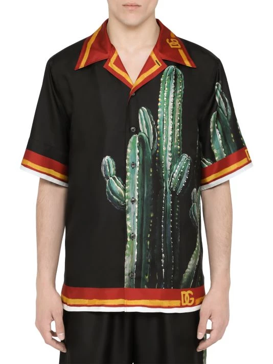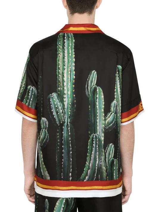 A cactus graphic adorns Dolce & Gabbana’s silk twill bowling shirt, designed with logo detailing.