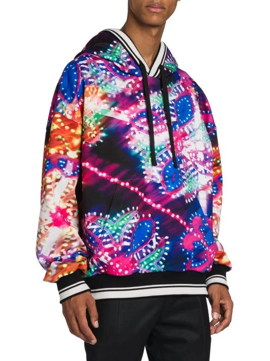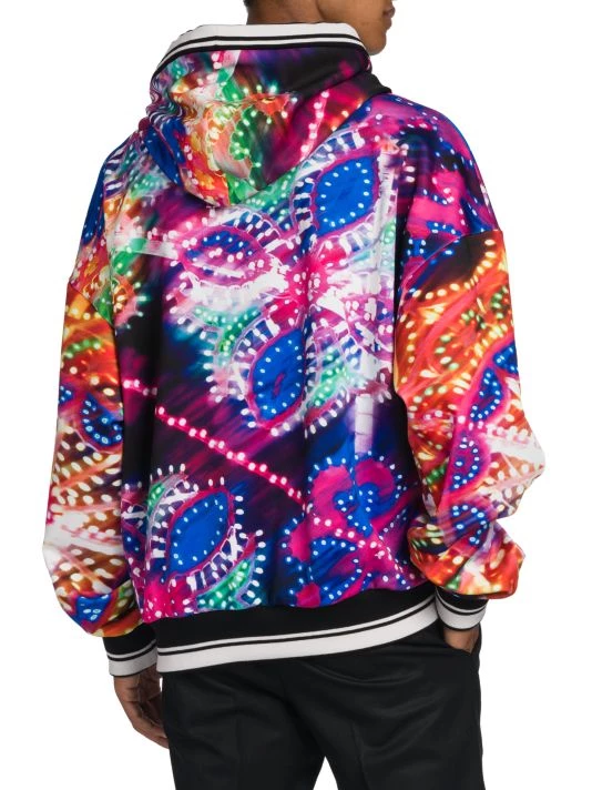 Crafted of a polyester and spandex blend, this stretch hoodie from Dolce & Gabbana boasts a multicolored print. This style features a striped hem and sports a drawstring hood.