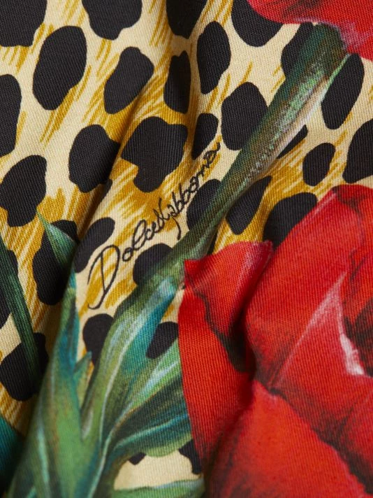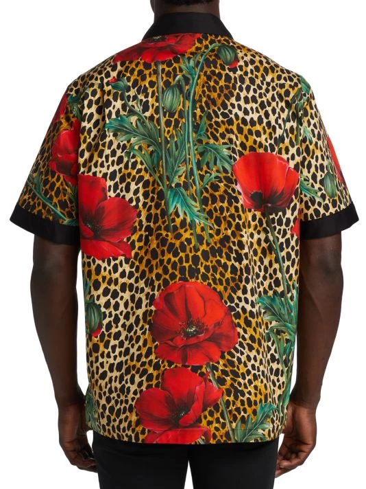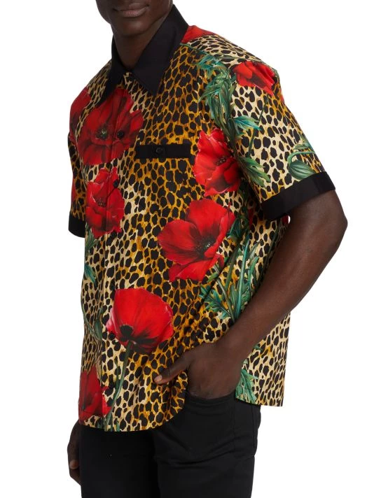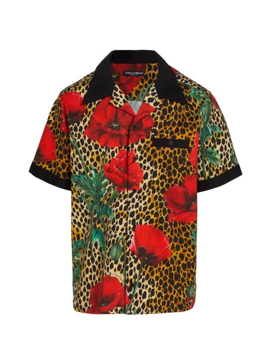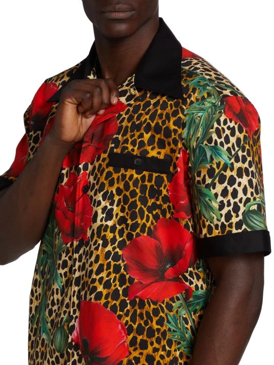 Succulent florals decorate this Dolce & Gabbana shirt, complemented by a graphic ocelot print. The shirt’s structure features a camp collar and short sleeves.