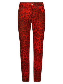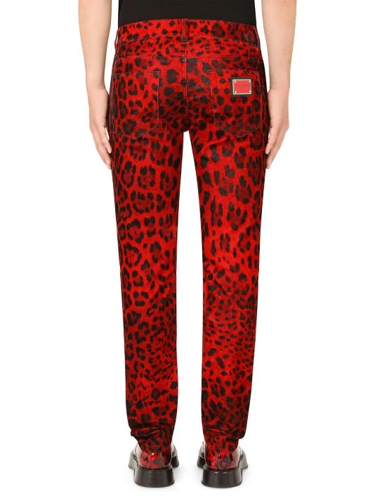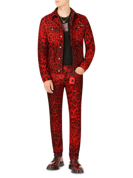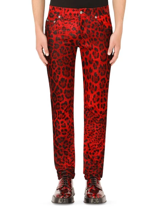 DOLCE&GABBANA’s Hot Animalier Collection rekindles the brand’s iconic passion for leopard print.These velvet pants feature a bold leopard print with silvertone buttons.
