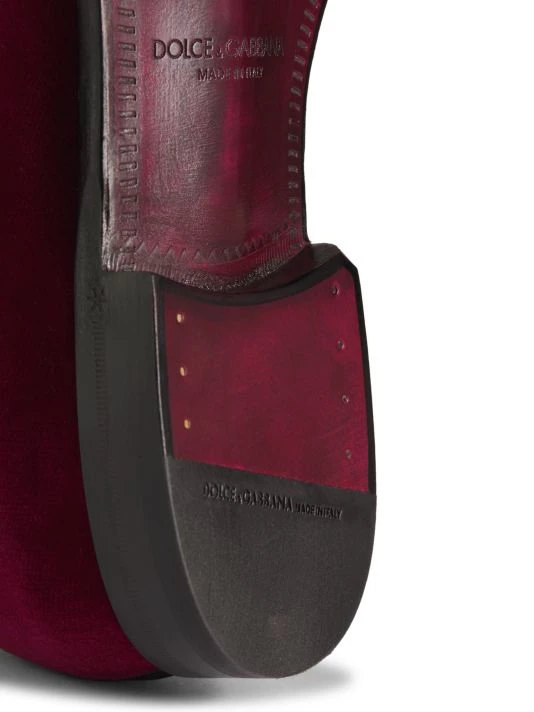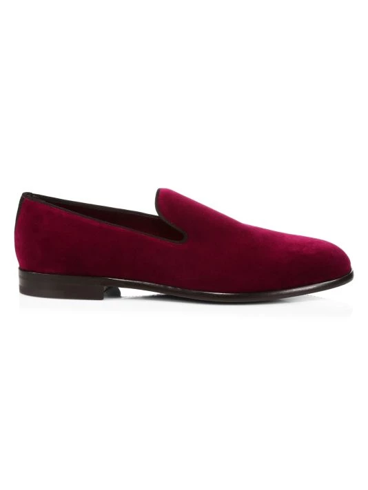 Rich velvet loafers with sophisticated styling finished with a leather sole and textile trim.