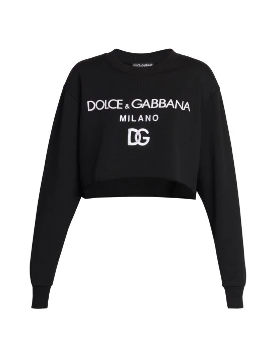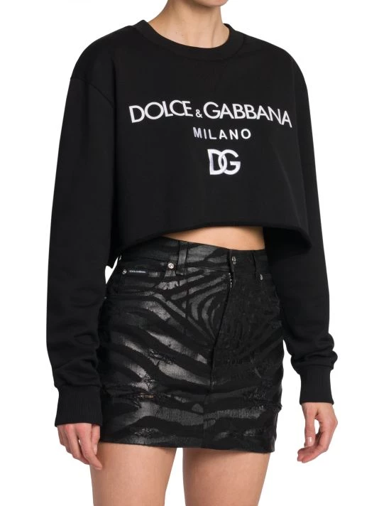 From the Zebra Collection. Cut in an ultra-cropped-silhouette, DOLCE&GABBANA’s crewneck sweatshirt is defined by contrast brand embroidery at the chest.
