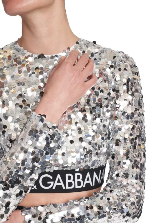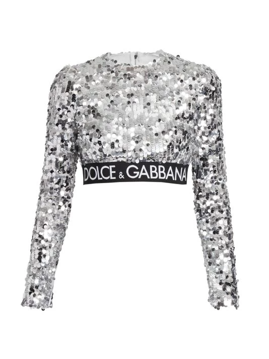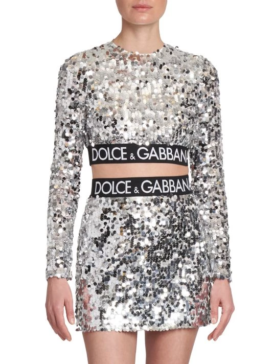 From the Zebra Collection. Cut in an ultra-cropped-silhouette, DOLCE&GABBANA’s long-sleeve top features lustrous sequin embroidery and a contrast banded logo hem.