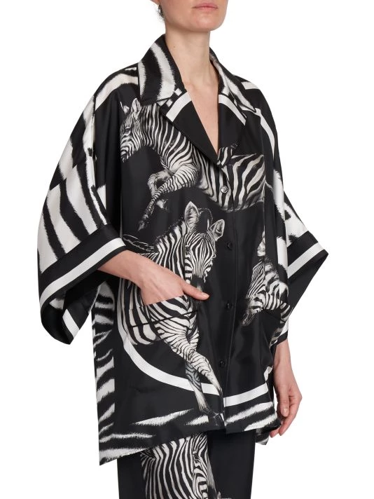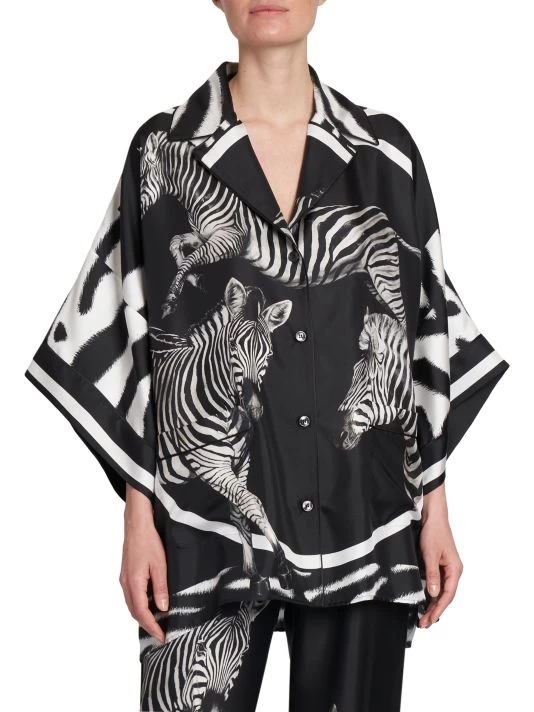 From the Zebra Collection. Crafted of silk twill, DOLCE&GABBANA’s boxy button-front shirt is defined by large zebra prints and breezy split sides.