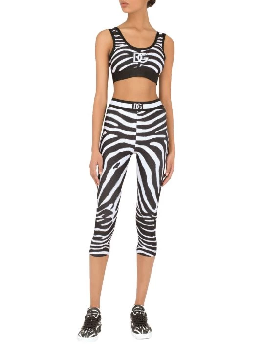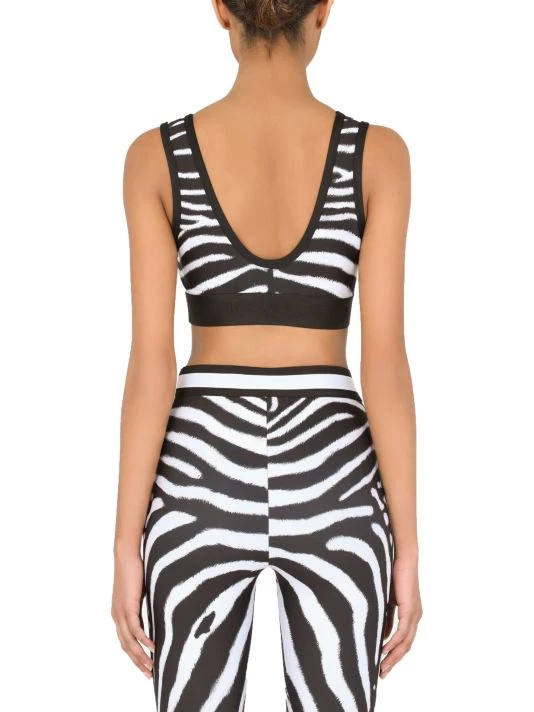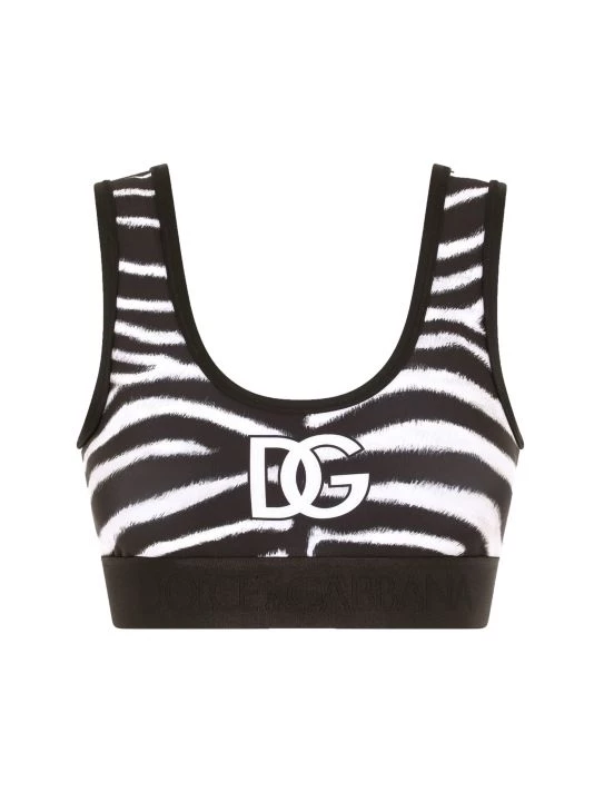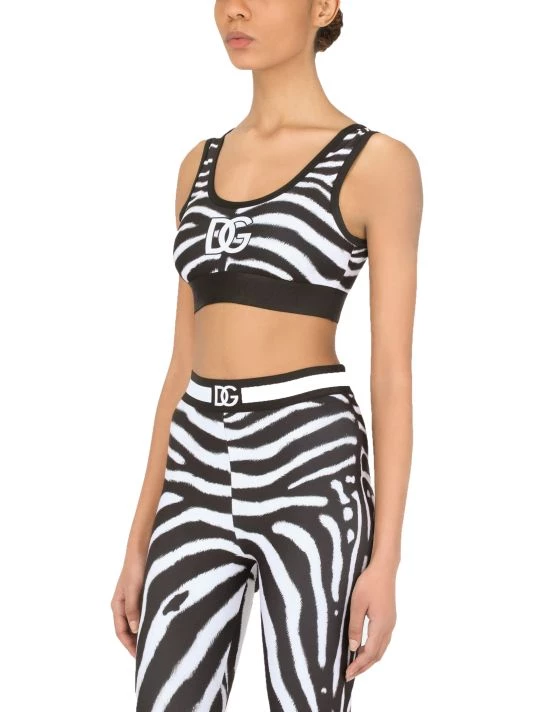 ONLY AT SAKS. This zebra print sports bra is adorned with the DG monogram at the center front.