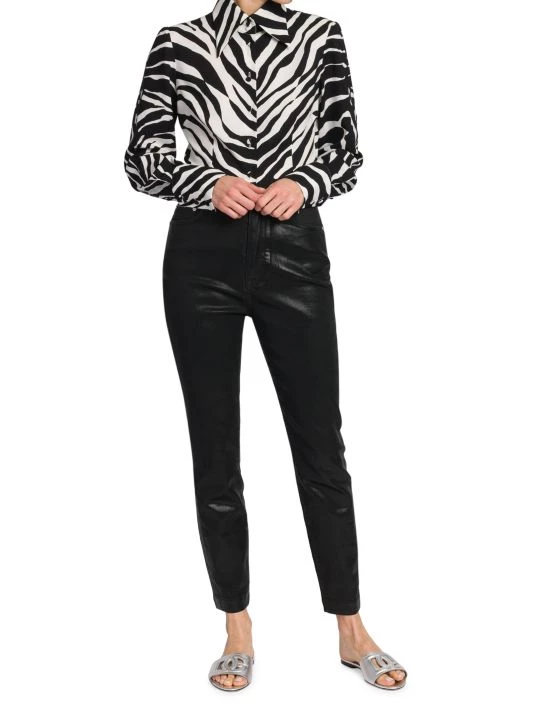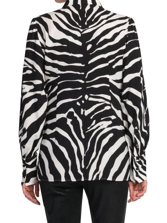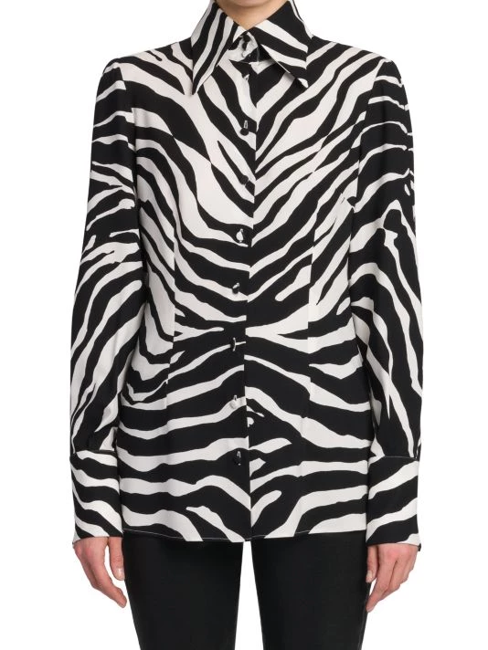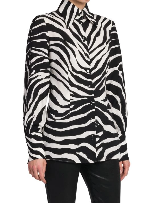From the Zebra Collection. Crafted of luxe silk, DOLCE&GABBANA’s button-front blouse is defined by a large two-tone zebra print.