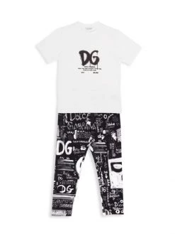 DOLCE&GABBANA Little Girl’s & Girl’s Contrast Logo Striped Swimsuit For Kids