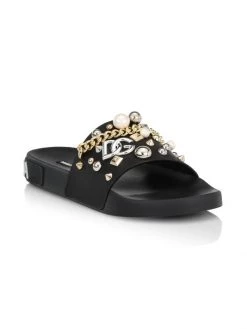 DOLCE&GABBANA Embellished Logo Slides For Men Bianco