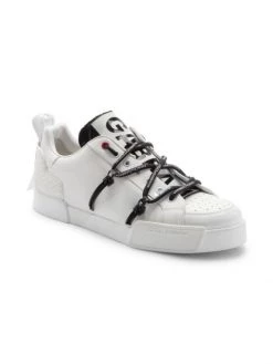 DOLCE&GABBANA Portofino Logo Strap Leather Sneakers For Men Nero