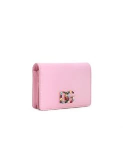 DOLCE&GABBANA Multicolor Stone DG Leather Card Holder Rosa Baby
